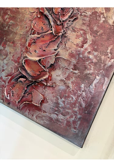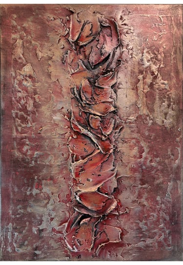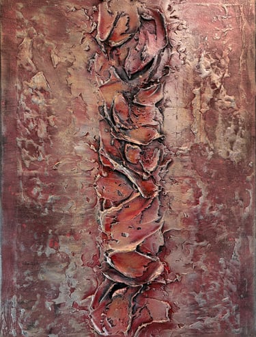 The journey through Mersedes Mein’s works explores multiple manifestations of relationship through a sensitive cartography of the forms of the link. Each work proposes a singular approach to relationship, explored as inner experience, tension of contact, enveloping presence, organic balance, discreet attachment, shared space, relational interval, and temporal continuity. Through Touches of Depth, relationship inscribes itself within the sensitive thickness of matter, revealing the link as layered inner experience. Accros The Surface addresses the fragility of contact, where the link persists within threshold tension and effort of proximity. Embrace as Link introduces an enveloping dimension of the link founded on welcome and chromatic containment. Balance in Connection explores the link as living equilibrium between distinct forces, proposing an organic reading of coexistence. Subtle Ties focuses on discreet attachments, revealing relationship within silent continuity of presences. In Relation develops the idea of shared space structured by a luminous centre and stabilizing periphery, suggesting the link as shared territory. Between Us deepens the dimension of relational interval, where distance becomes space of link construction. Finally, Continuation introduces the temporality of relationship, presenting the link as trajectory and progressive transformation of presences. Together, Mersedes Mein’s works compose a journey where relationship unfolds through multiple states. The exhibition proposes a progressive traversal of the forms of the link, revealing its complexity, fragility, and ability to persist through time.